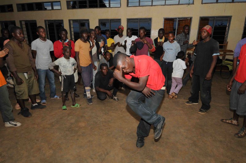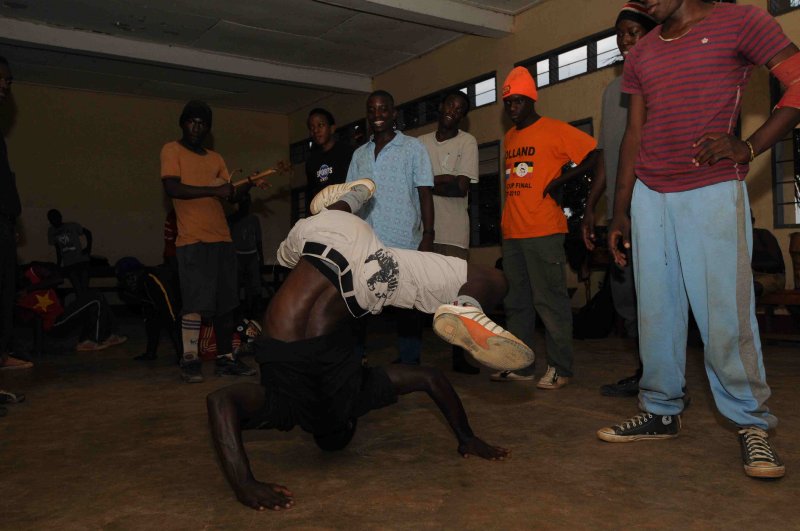 During my time at the back packers in Kampala, and that was quiet long, I met Gerald or better he met me. Together with a friend one year ago he started a project called “Uganda Dance Together”. The idea is to take children from “disadvantaged” neighborhoods and teach them break dance.  That would not only give them something to do but also create team spirit and a dream for the future. They all want to go to festivals in Chicago and so on. Well, Gerald asked if I could take some pictures so they have material to advertise and promote themselves. Guess what I said???? Not only was it another great chance to look into real life Uganda and a scratchy part of Kampala but also a new challenge of photography. I believe a view good shoots came out, what do you think? Gerald liked them and when I helped him writing an invitation to politicians for their anniversary festival he was even more happy. I call that a perfect win win situation.