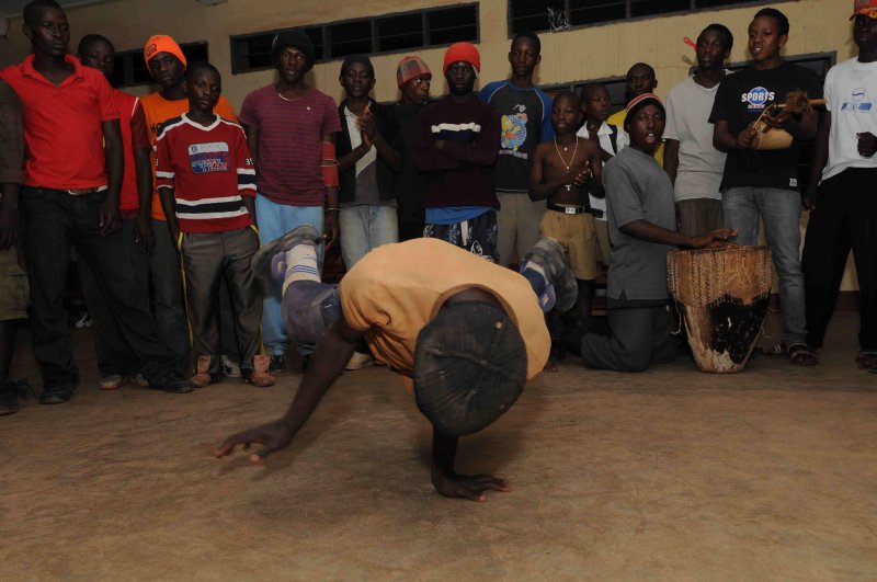 During my time at the back packers in Kampala, and that was quiet long, I met Gerald or better he met me. Together with a friend one year ago he started a project called “Uganda Dance Together”. The idea is to take children from “disadvantaged” neighborhoods and teach them break dance. That would not only give them something to do but also create team spirit and a dream for the future. They all want to go to festivals in Chicago and so on. Well, Gerald asked if I could take some pictures so they have material to advertise and promote themselves. Guess what I said???? Not only was it another great chance to look into real life Uganda and a scratchy part of Kampala but also a new challenge of photography. I believe a view good shoots came out, what do you think? Gerald liked them and when I helped him writing an invitation to politicians for their anniversary festival he was even more happy. I call that a perfect win win situation.