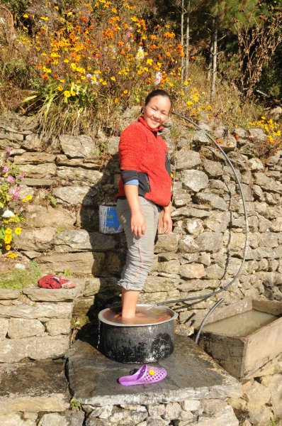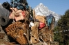 Back to Nepal. Here in the mountains without streets, the goods can not be carried by stinky trucks. Here they are carried by stinky (only if you step in their droppings) yaks and even more impressive by amazing porters. Up to 100kg they put on their back, walk it for days and into altitudes of 5000m and more. Impressive enough to dedicate some pictures to them, the guy smiling being our porter.