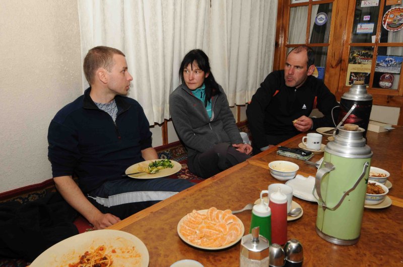 Trekking in Nepal works for all tourists the same. Usually 3 to 5 hours of trekking per day gaining around 400m of altitude. Every second or third day you put in a rest day meaning that you do climb that day but go down again, sleeping in lower altitude than what you climbed that day. This reduces the risk of altitude sickness and helps the body to adapt. Altitude sickness is serious especially as more average fit people take on the challenge. They fight by taking preventive medicine (Diamox is the big name here). Gabor and I do not believe it that stuff (except for emergencies) and preferred the slow pace walking combined with good garlic food.
