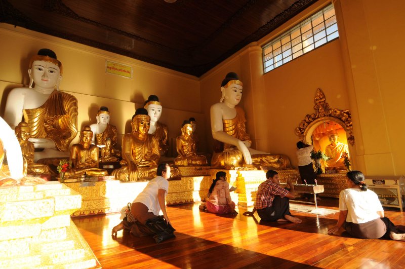 The opposite of old, rusty and cheap would be timeless, gold and expensive. Here we are, at the most famous Buddha temple called “Swedagon Paya” in central Yangoon. 15 tons of gold just for the inner part, a huge diamond on top and endless traditions, figures, and ceremonies all around. Each Myamese has to make it here at least once. I understand that even though its quiet a contrast to the poverty of the country as such.