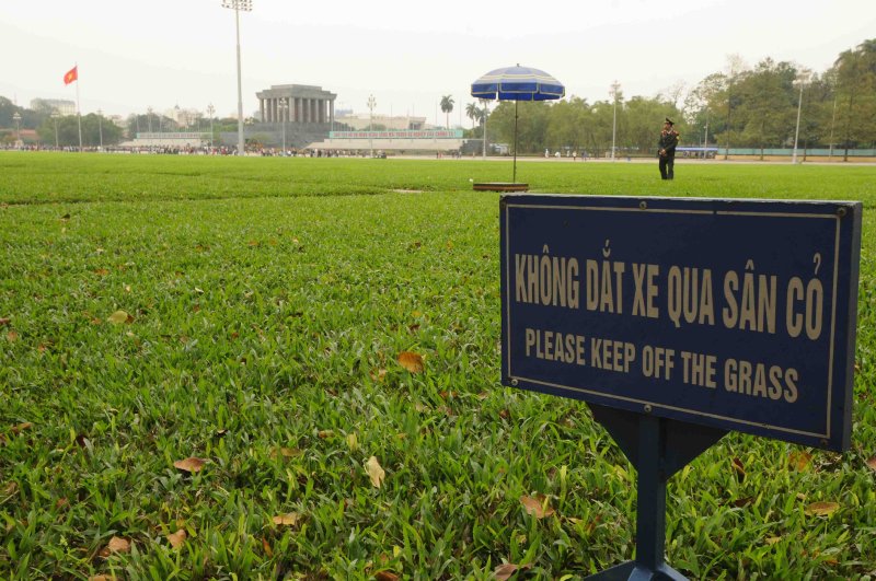 The whole city of Hanoi is somehow dominated by the whole cult around How Chi Minh. Like Lenin, Mao or Kim Yong Il lately he is celebrated and worshiped like a god. Waiting to get into the mausoleum I thought about the ingredients of creating a cult around a person and here is my output, partly backed by the photos: Take a huge free space for just one building in the middle. Have short opening hours creating long queues, free entrance, lots of police and army to guard the hero, patrol ceremonies when the guards change shifts, enforcing strict rule as no foto, no noise, inline walking and appropriate clothing and use simplicity, just showing the coffin, nothing else. Beyond the mausoleum put everything on display, the fork he eat with, the car he drove, the chair he sat on, the bed he slept in, the pen he wrote with and the toilet paper he…………………………………………. It works, I think HCM must have been a special guy.